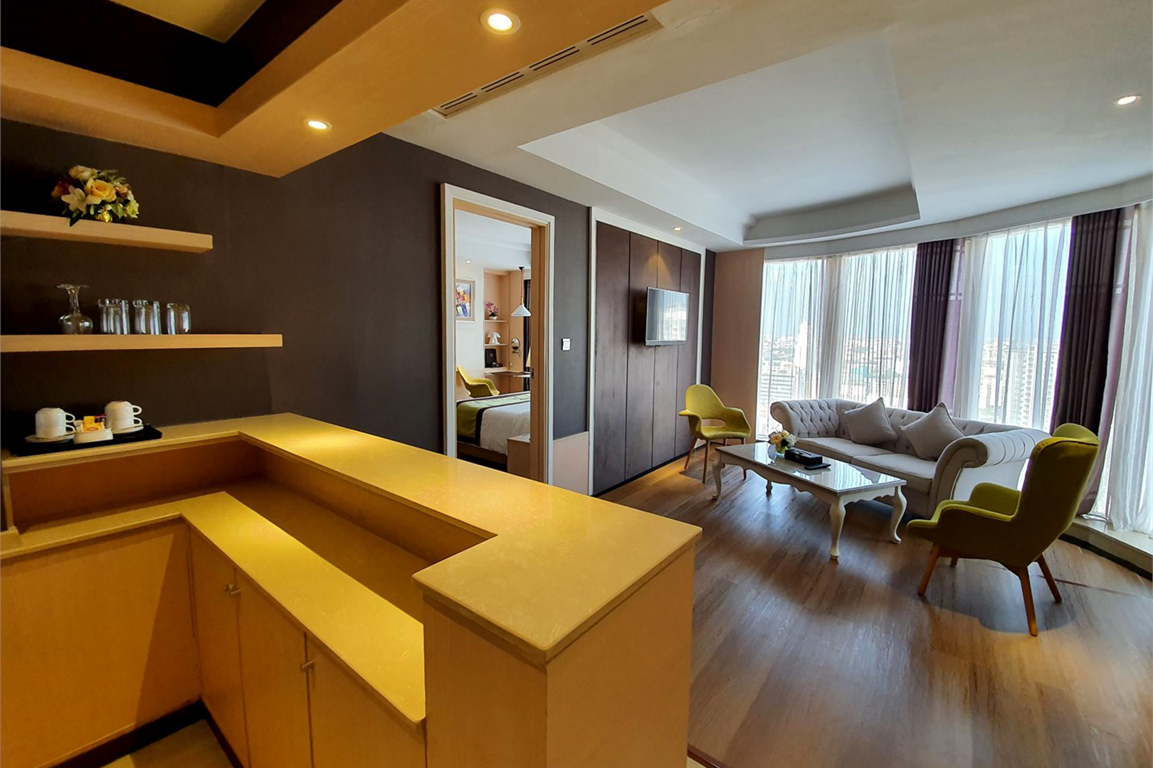 我們豪華的公寓式青少年套房設有獨立臥室與客廳,並設有儲藏室。